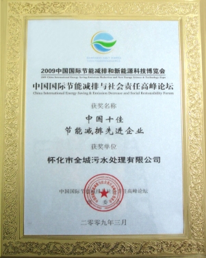 • 2009年3月在胡錦濤、溫家寶等中央領(lǐng)導(dǎo)出席的中國國際節(jié)能減排與新能源科技博覽會和高峰論壇上評為“中國十佳節(jié)能減排先進(jìn)企業(yè)”。